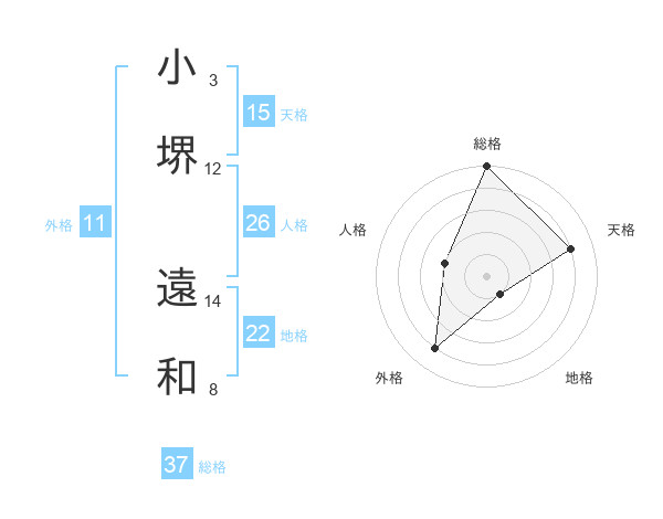 小堺 遠和さんの総格は37画の5点!