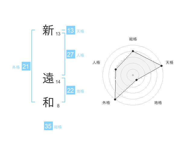 新 遠和さんの外格は21画の5点!