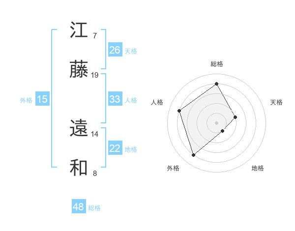 江藤 遠和さんを姓名の画数から五運を鑑定