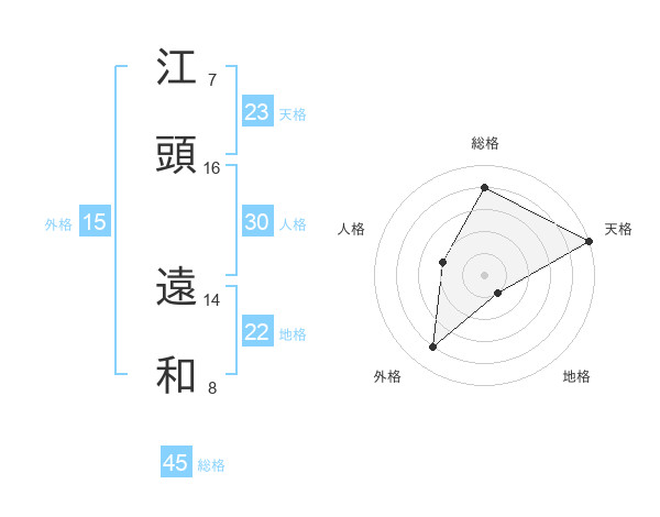 江頭 遠和さんを姓名の画数から五運を鑑定