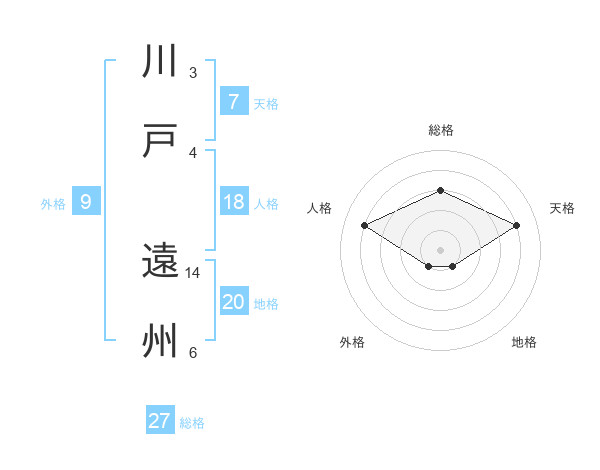 川戸 遠州さんの総格は27画の3点!