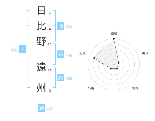 日比野 遠州さんを姓名の画数から五運を鑑定