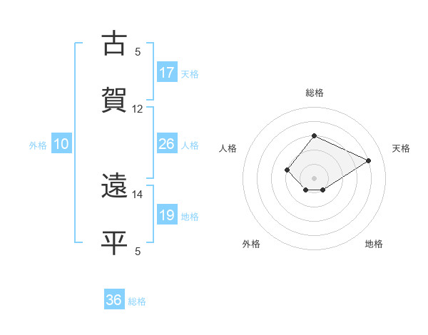 古賀 遠平さんの天格は17画の4点!