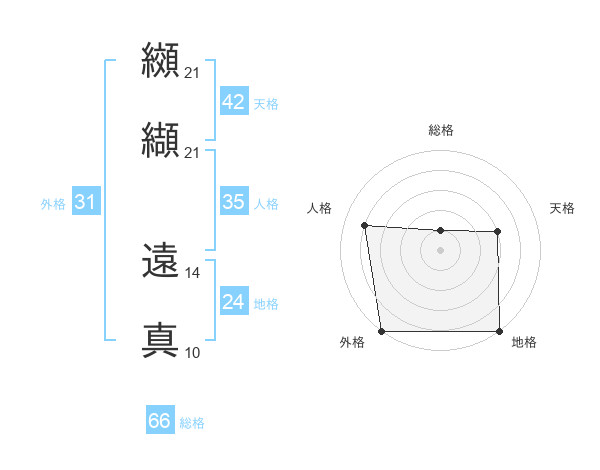 纐纈 遠真さんの総格は66画の1点!