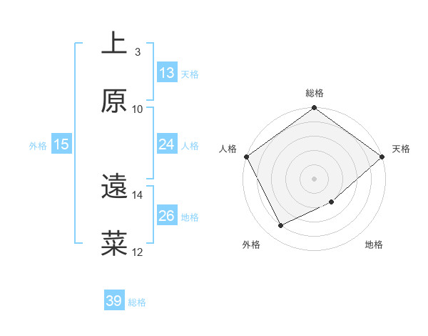 上原 遠菜さんの総格は39画の5点!