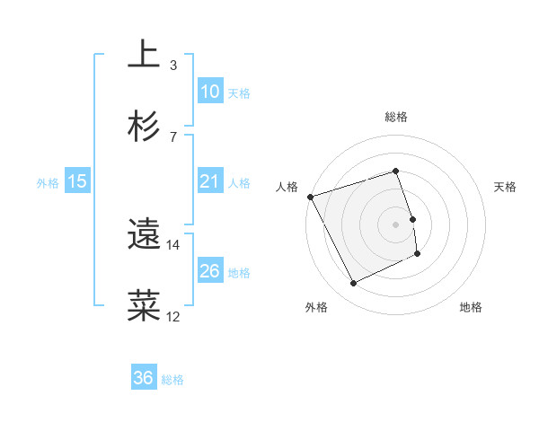 上杉 遠菜さんの総格は36画の3点!