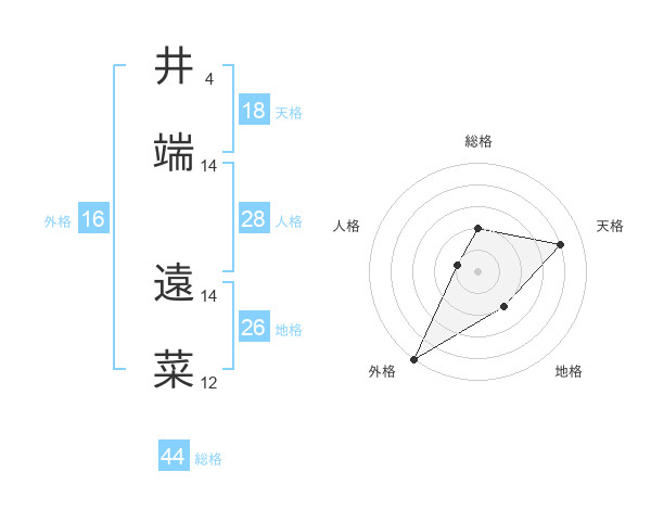 井端 遠菜さんを姓名の画数から五運を鑑定