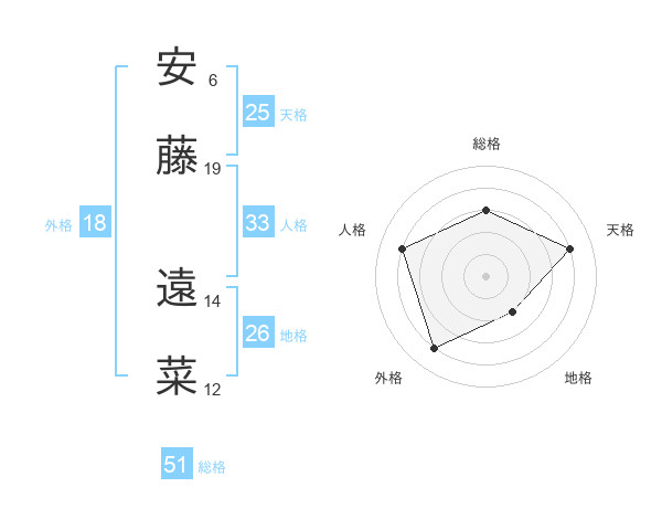 安藤 遠菜さんを姓名の画数から五運を鑑定