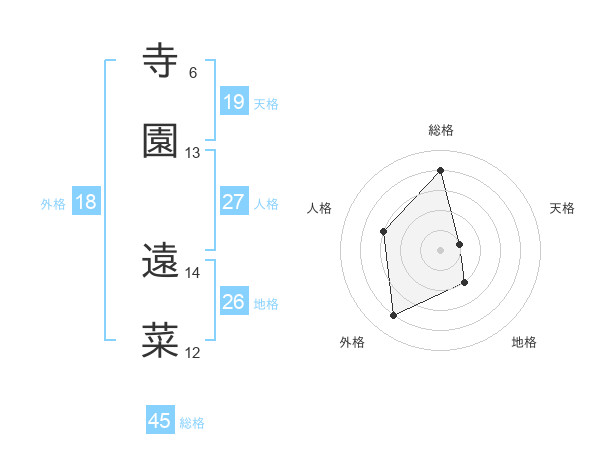 寺園 遠菜さんの総格は45画の4点!