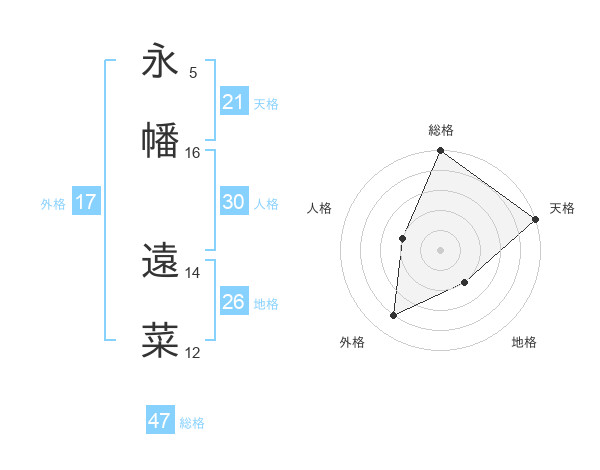 永幡 遠菜さんの総格は47画の5点!