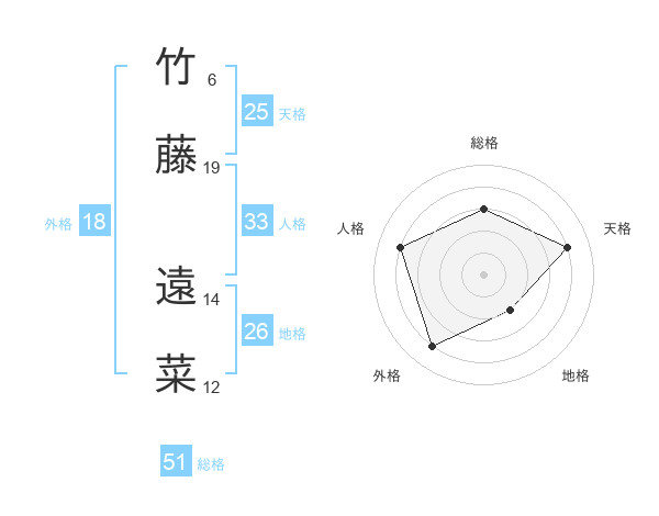 竹藤 遠菜さんを姓名の画数から五運を鑑定