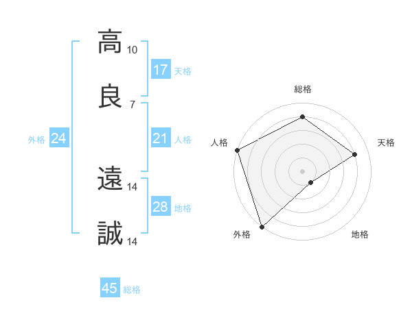 高良 遠誠さんを姓名の画数から五運を鑑定