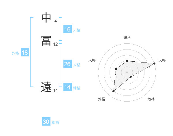 中冨 遠さんの総格は30画の2点!