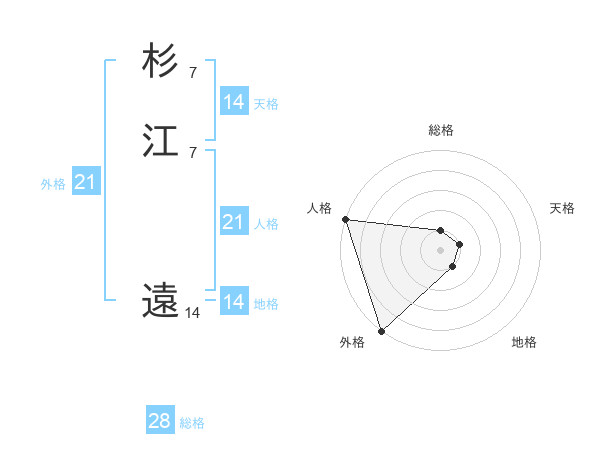 杉江 遠さんの総格は28画の1点!