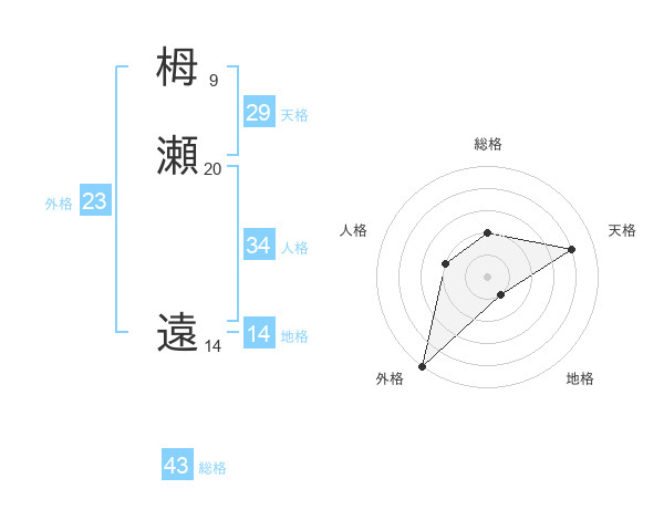 栂瀬 遠さんを姓名の画数から五運を鑑定