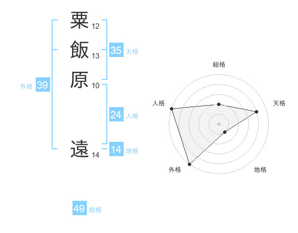 粟飯原 遠さんの外格は39画の5点!