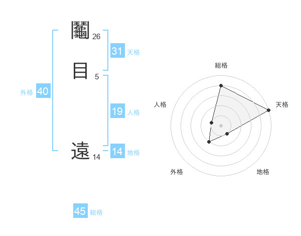 鬮目 遠さんの総格は45画の4点!