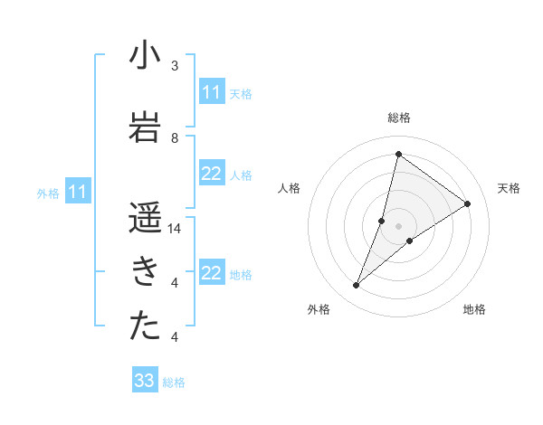 小岩 遥きたさんを姓名の画数から五運を鑑定