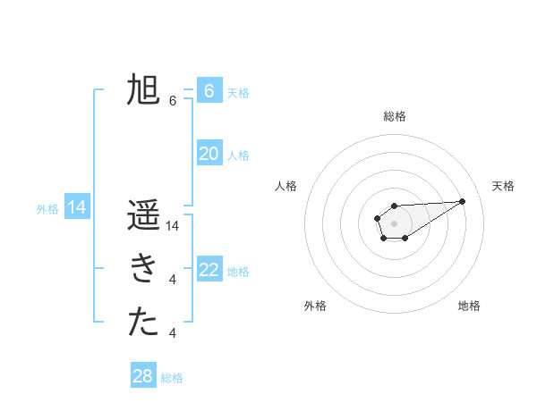 旭 遥きたさんの天格は6画の4点!