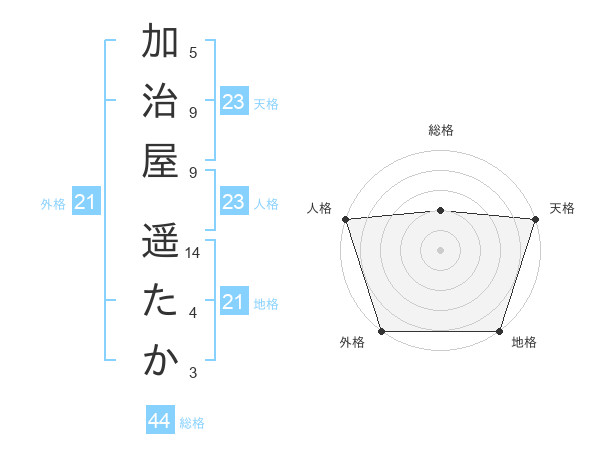 加治屋 遥たかさんを姓名の画数から五運を鑑定
