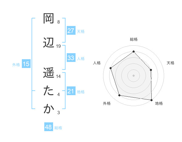 岡辺 遥たかさんの総格は48画の4点!