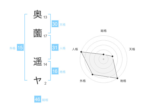 奥薗 遥ヤさんの総格は46画の1点!