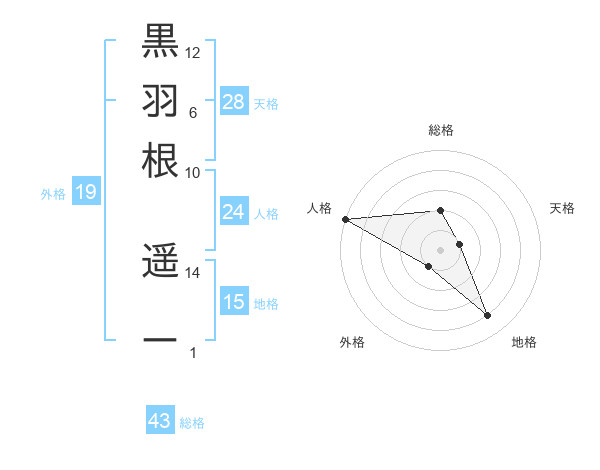 黒羽根 遥ーさんの人格は24画の5点!