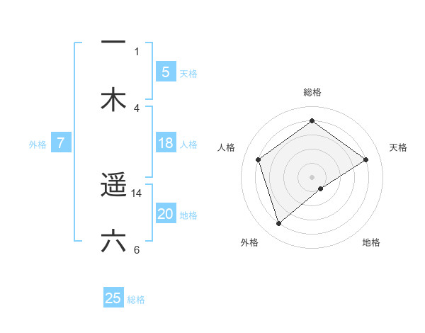 一木 遥六さんの総格は25画の4点!
