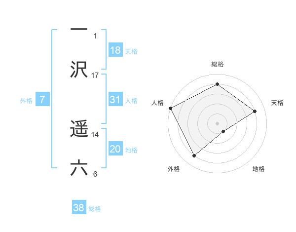 一沢 遥六さんを姓名の画数から五運を鑑定