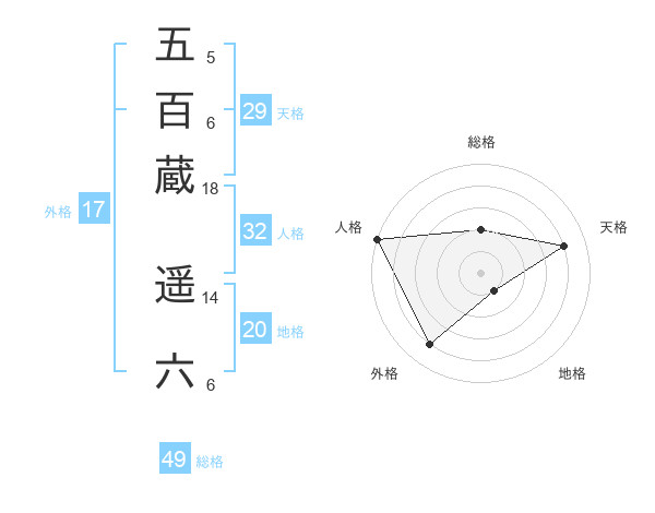 五百蔵 遥六さんを姓名の画数から五運を鑑定
