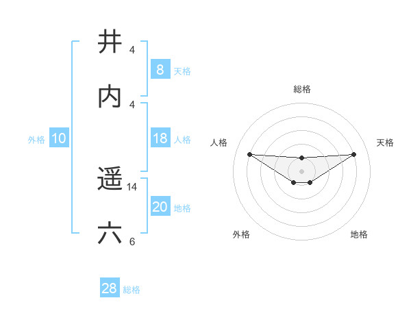 井内 遥六さんの総格は28画の1点!