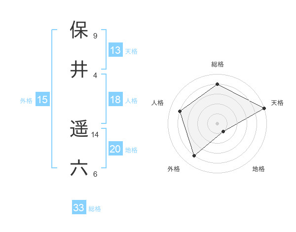 保井 遥六さんの総格は33画の4点!
