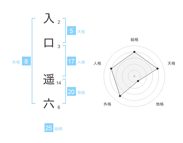 入口 遥六さんの総格は25画の4点!