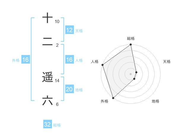 十二 遥六さんの外格は16画の5点!