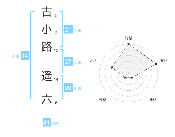 古小路 遥六さんの総格は41画の5点!