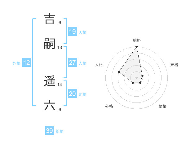 吉嗣 遥六さんの総格は39画の5点!