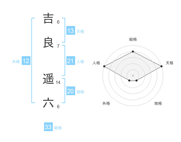 吉良 遥六さんの天格は13画の5点!