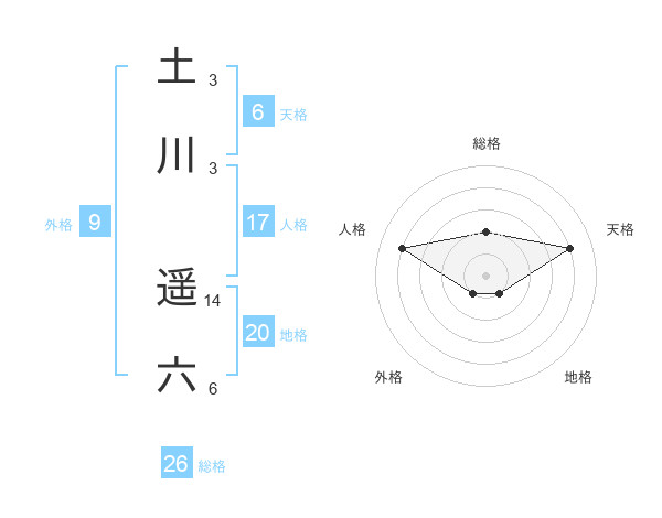 土川 遥六さんの総格は26画の2点!