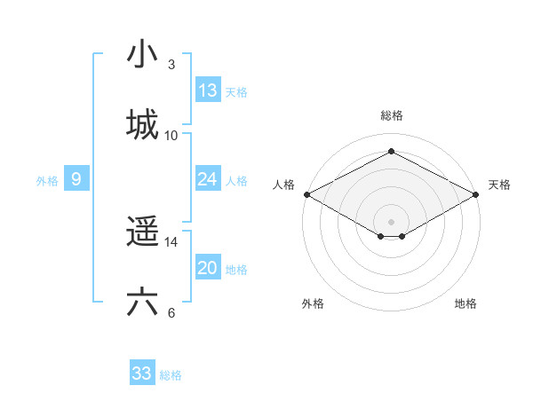 小城 遥六さんの総格は33画の4点!