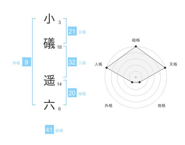 小礒 遥六さんの天格は21画の5点!