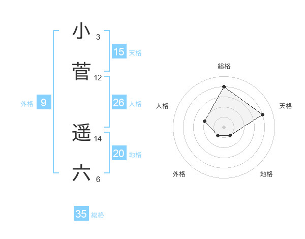 小菅 遥六さんの天格は15画の4点!
