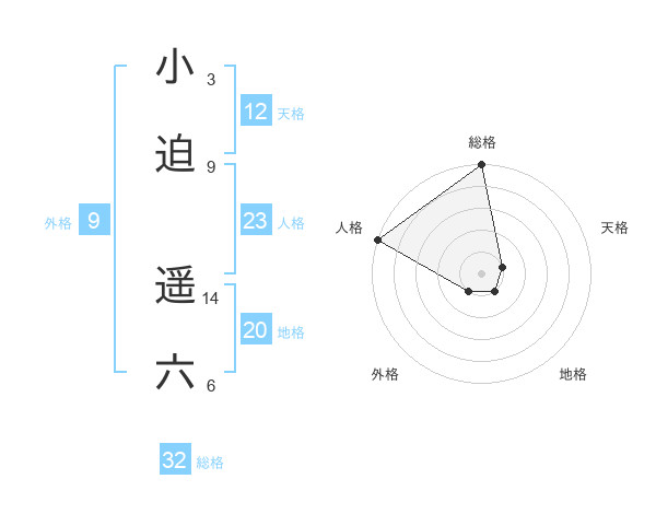 小迫 遥六さんを姓名の画数から五運を鑑定