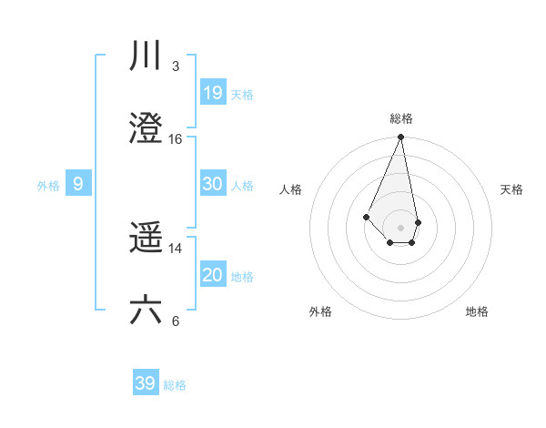 川澄 遥六さんの総格は39画の5点!