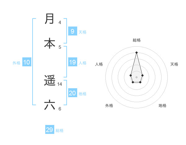 月本 遥六さんの総格は29画の4点!