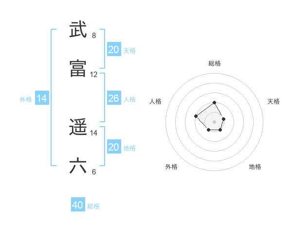 武富 遥六さんの総格は40画の2点!