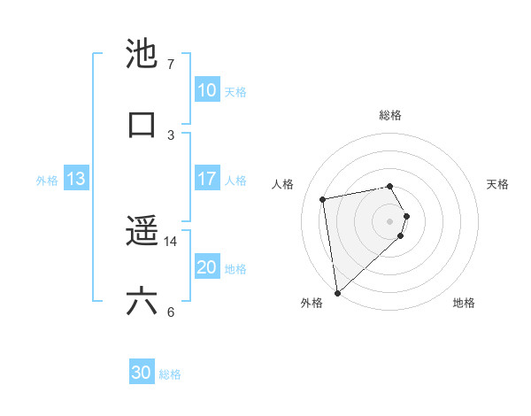 池口 遥六さんの外格は13画の5点!