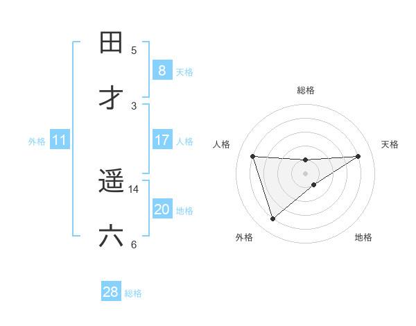 田才 遥六さんの天格は8画の4点!