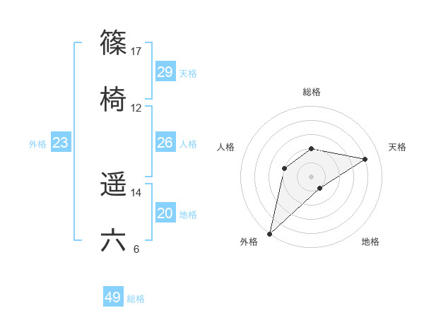 篠椅 遥六さんの天格は29画の4点!