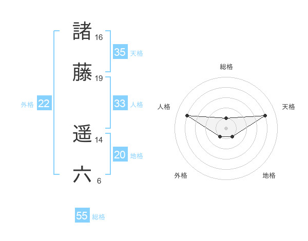 諸藤 遥六さんの外格は22画の1点!