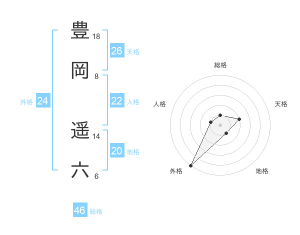 豊岡 遥六さんの外格は24画の5点!